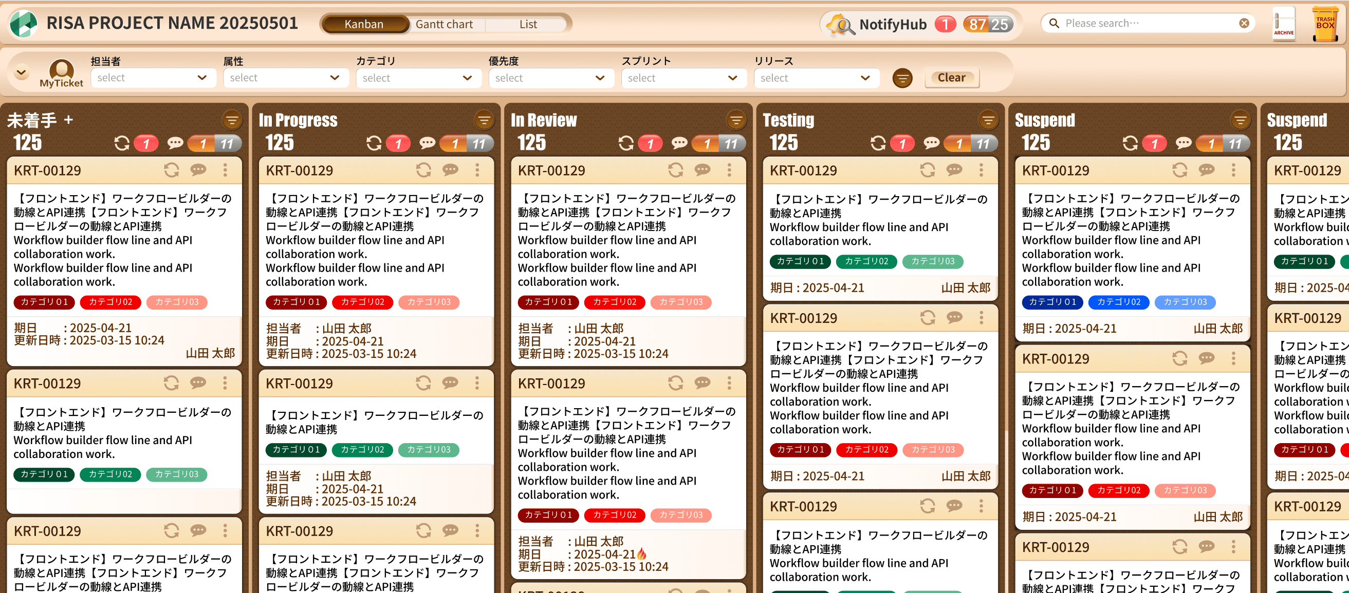 担当者がメインで使用するKanbanはシンプルで直観的なデザインで、誰もがすぐに使い始めることができます。