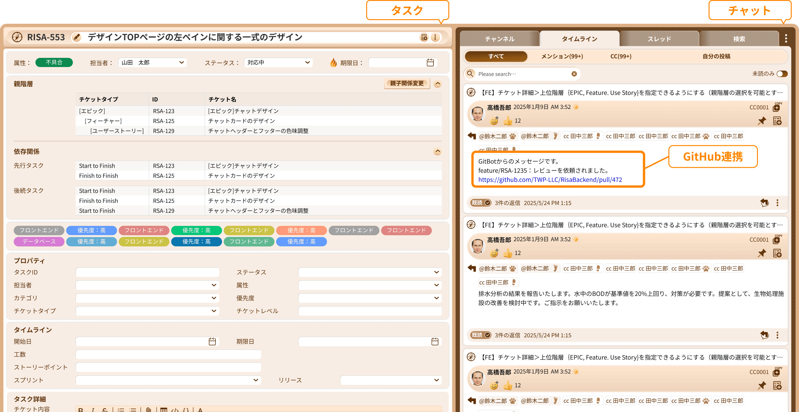 チケット(タスク)とチャットの統合は、業務効率を大きく高めます。