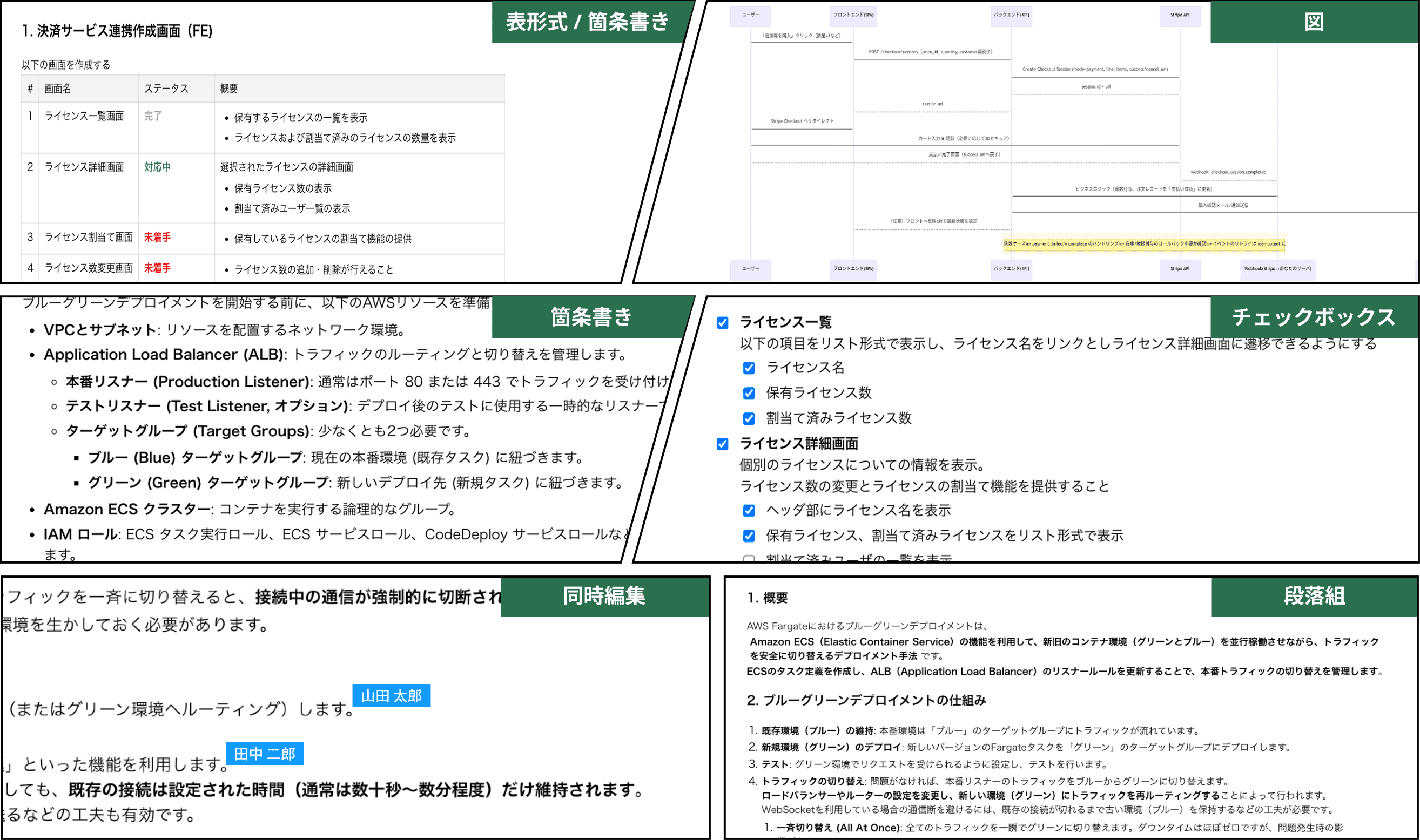 表、段落組、歯菜書きなど、普段の業務の中で必要な機能が備ねっています。
