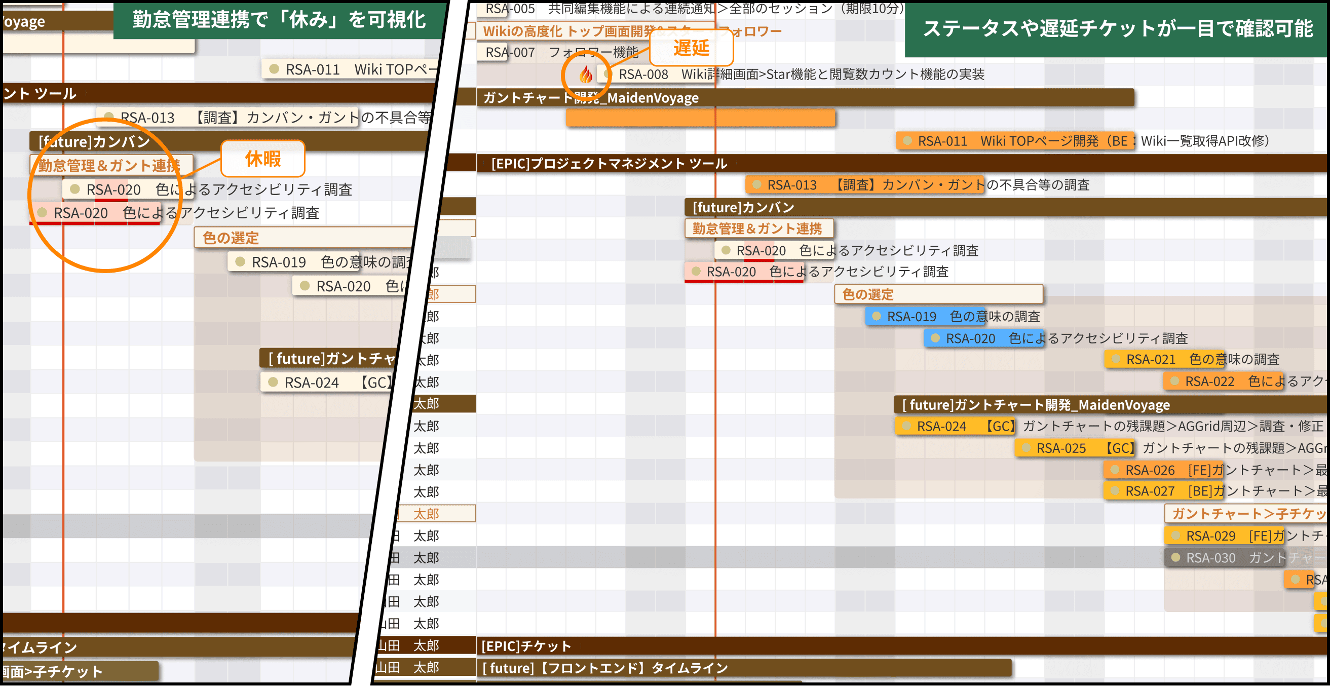 - ステータスやタスクの遅延を視覚的に把握可能